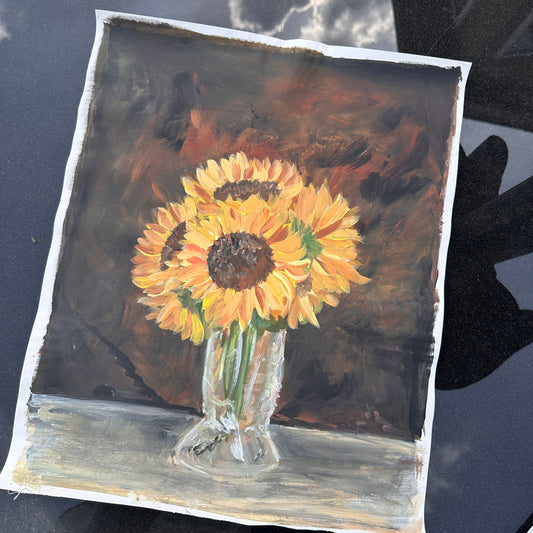 Sunflowers in Crystal Vase